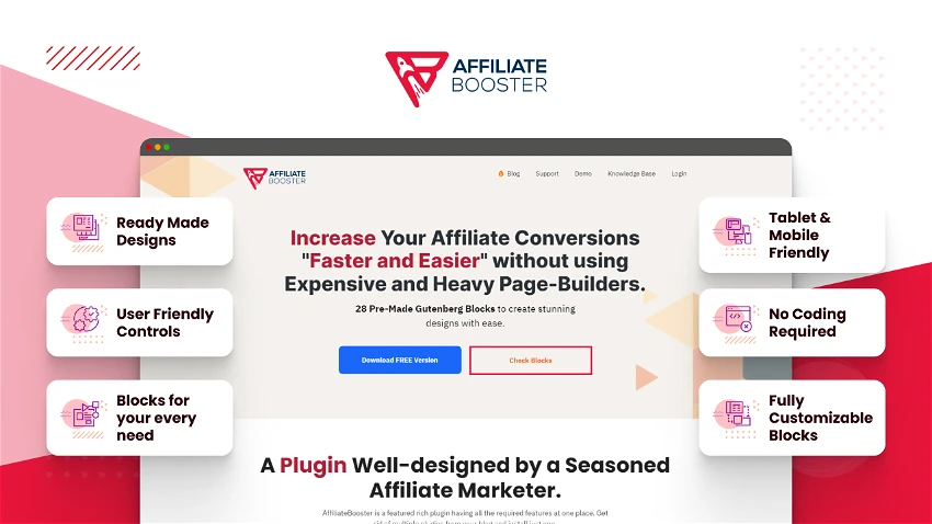 Affiliate Booster is a Gutenberg plugin that helps you optimize your blog posts for conversion. Increase your CTR and improve your sales using professionally designed Pros and Cons block, notice block, notification block, call to action, and buttons with gradients.